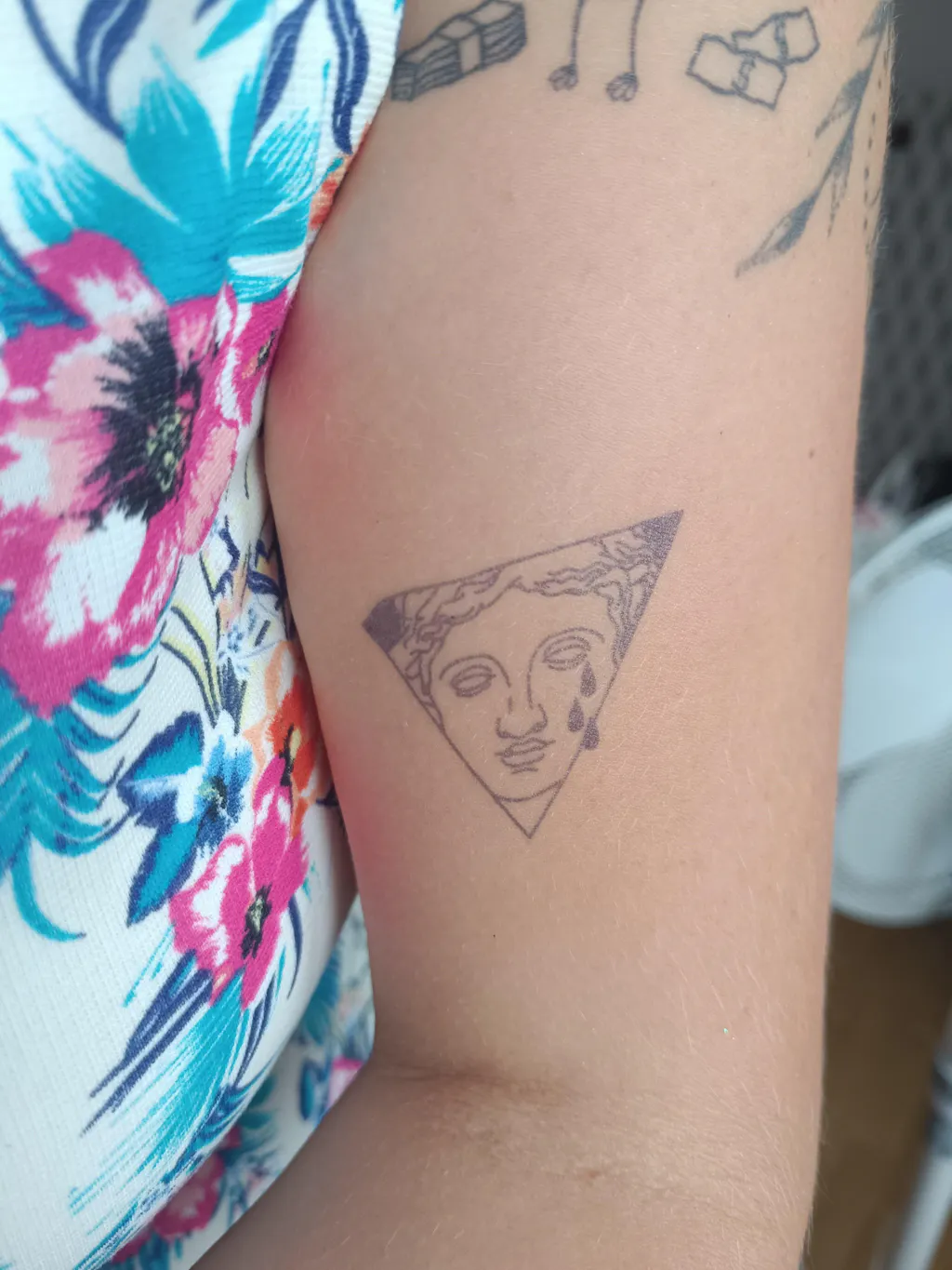 Opis: Humorystyczny tatuaż przedstawiający uproszczony cykl życia człowieka — od narodzin do ostatniego etapu, z napisem „Have Fun”. Przypomina o ulotności życia i zachęca do czerpania radości z każdej chwili. Wzór dla osób z dystansem do rzeczywistości i poczuciem humoru.