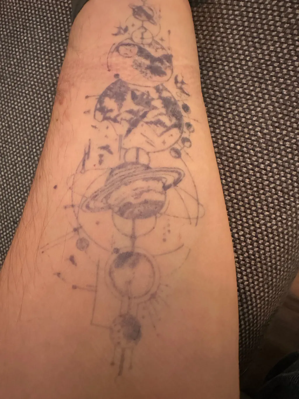 Dobrze się trzymał, rzeczywiście około 2 tyg zanim zaczął się ścierać, długie rękawy w zimie dały mu trochę ciężki czas ale podołał. Wybarwiał się na mojej skórze około 2 dni, przygotowałam wcześniej skórę kremem i ogoliłam włoski, nakładanie było banalnie proste przez jego rozmiary, nie było trudno dopilnować żeby się nie rozjechał. Zdjęcia z różnych momentów podczas tych 2 tygodni