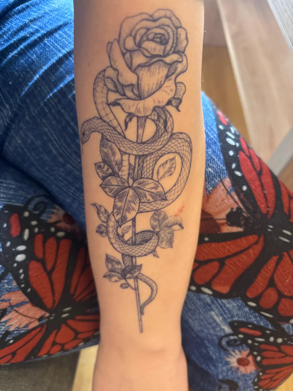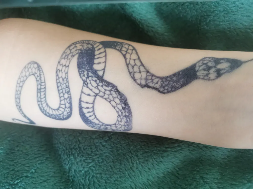 Opis: Wijący się wąż, wyciągający język. Minimalistyczny, ale wyrazisty wzór.